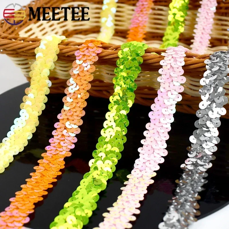 5/10/25 metri Meetee 2cm paillettes nastri di pizzo Strech oro argento finiture elastiche per abito da ballo Paillette accessori per cucire fai da te